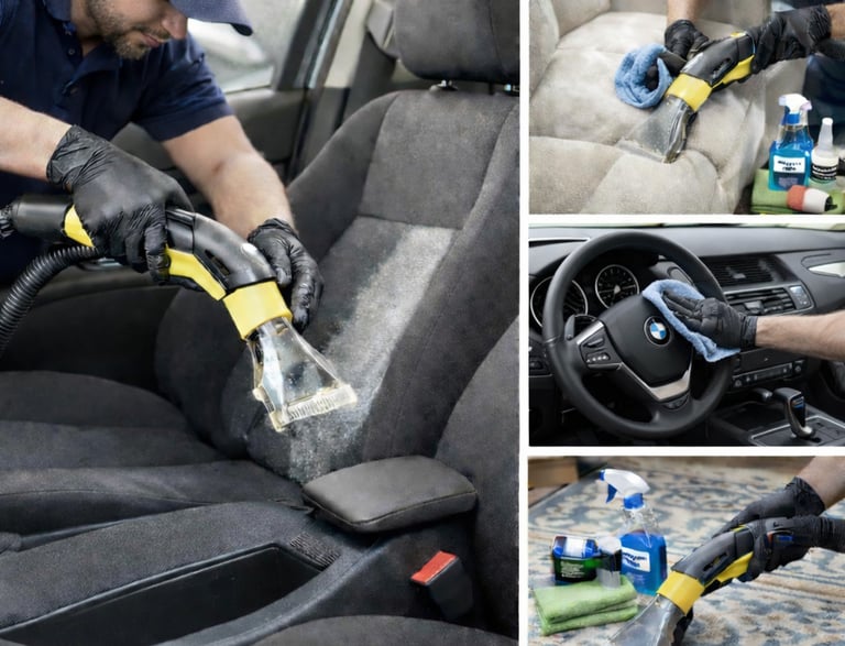 Spécialiste du nettoyage intérieur de véhicules, canapés et tapis. Nous intervenons à domicile avec un équipement haut de gamme pour des prestations sur mesure. Nos prestations sont ajustables pour répondre précisément à vos besoins, profitez d’un devis gratuit et personnalisé.